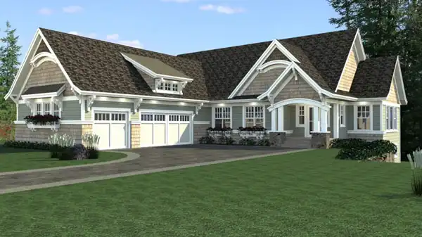 This lovely Craftsman design is actually a ranch home with a finished walkout basement. A quiet study is situated off the foyer, for uninterrupted concentration. When it's party time, you'll love the large entertaining area, which begins with the island kitchen flowing into the sizable great room. The brilliant dining room opens to a screen porch, which shares a see-through fireplace with the great room. The deluxe master suite shows off a sit-down shower. The spacious laundry room could not have a more convenient location. The lower level is anchored by the family room, with its adjacent game area.