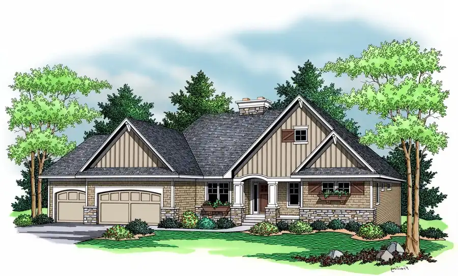 This charming one-bedroom cottage design could be perfect for empty nesters. A daylight basement gives you plenty of expansion space. The posh owner's suite is secluded for privacy. Host any gathering in the fabulous great room. Your guests will feel important when you serve them your family recipes in the formal dining room. The family can enjoy casual times at the kitchen's island snack bar. A cathedral ceiling presides over the breezy screened porch.