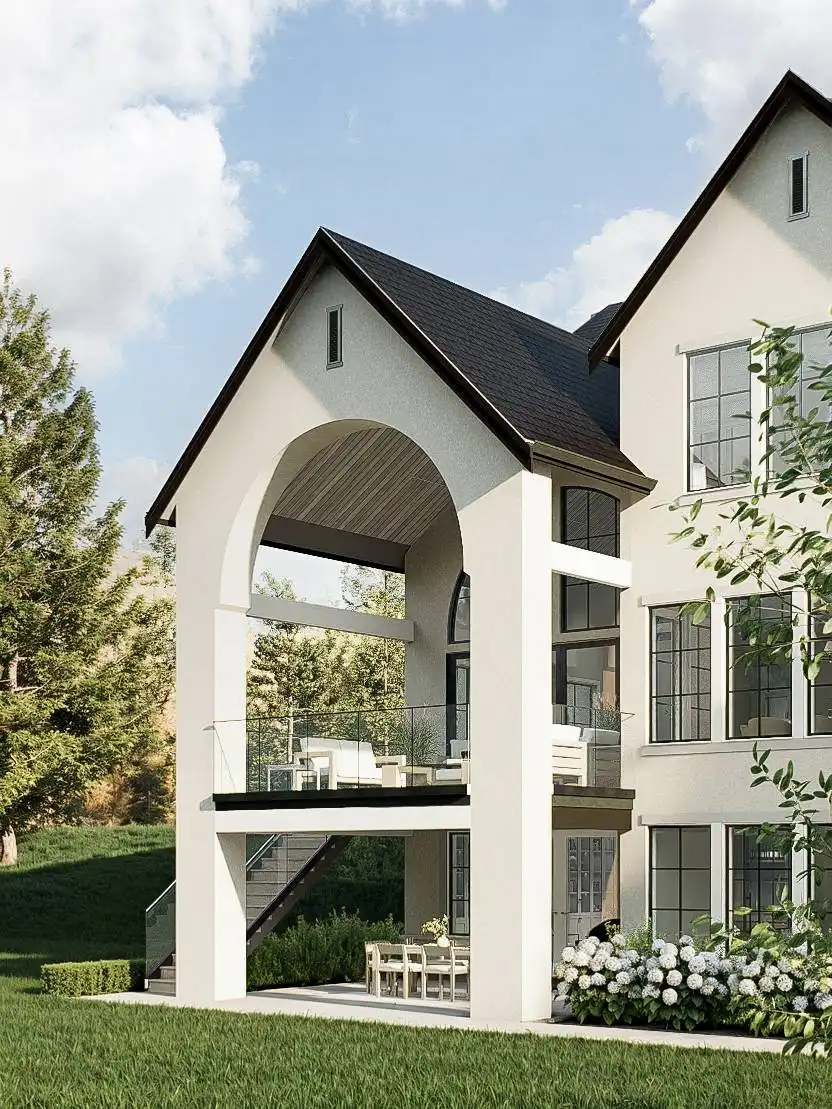 House Plan 8699, an ARDA AWARD (Published Design-Built) winning design, showcases 4,954 square feet of European-inspired elegance blended with modern functionality. This home features six bedrooms, including a private primary suite with a spa-like ensuite and an expansive walk-in closet. The open-concept living space brings together a vaulted great room, gourmet kitchen, and seamless outdoor access, creating an ideal setting for gatherings and everyday comfort. A flexible office and a private two-bedroom apartment add versatility, making this plan perfect for families or multigenerational living while capturing timeless architectural charm.