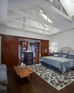 Nostalgic gables and a shed dormer combine to make this two-story farmhouse design a real showpiece. The gourmet kitchen flows into a good-sized rear porch for fresh-air dining. The great room and parlor have enough space for any large get-together. The master suite could also serve as in-law quarters, since there is another master suite on the second level. The children will appreciate their sizable bedrooms, as well as the versatile activity room.