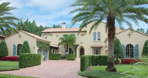 Spanish details such as arches, stucco and a clay-tile roof adorn this attractive two-story design. Inside, a two-way fireplace is shared by the formal living room and a peaceful study. The open kitchen serves up meals and snacks with ease. The family room and nook are embraced by wonderful outdoor spaces. The luxurious master suite contains just about everything on your wish list! Three different staircases ascend to the second floor, with its four additional bedroom suites. The game room is great for entertaining friends will billiards, cards or a movie.