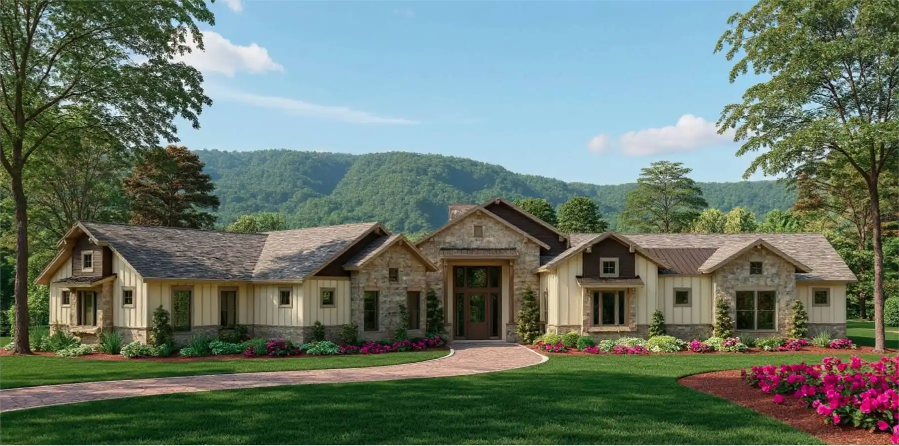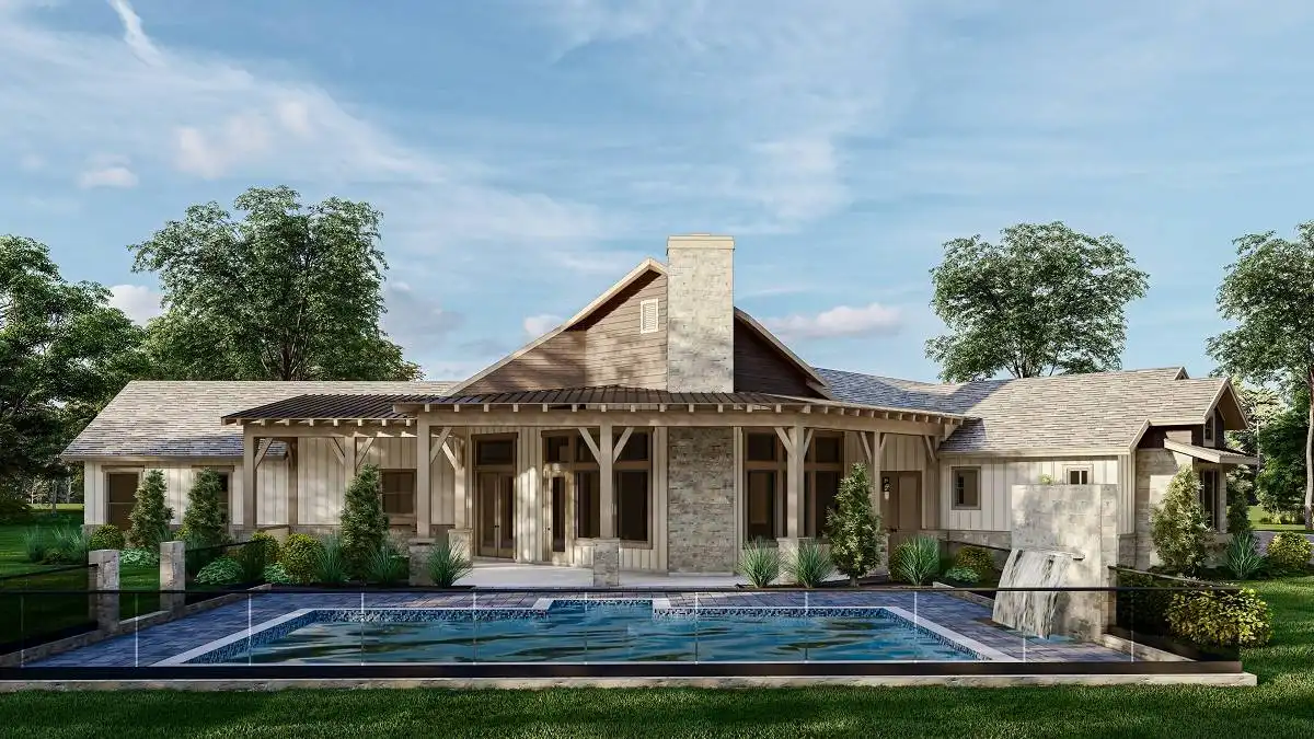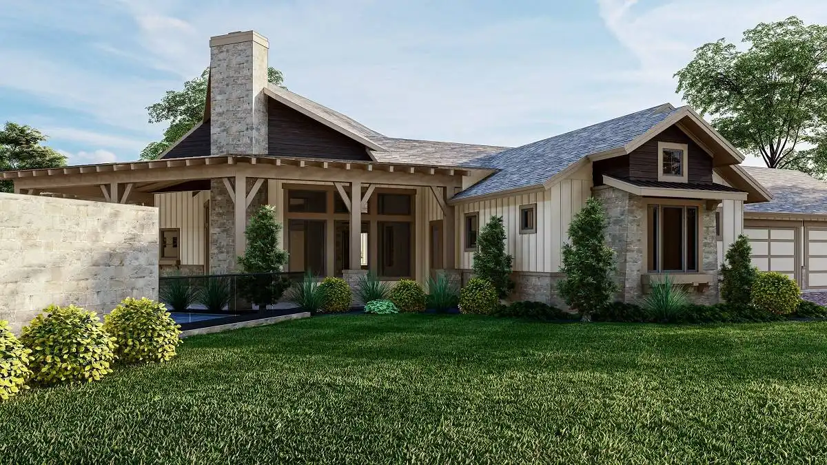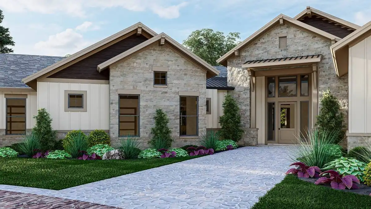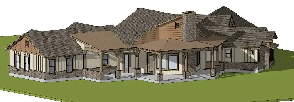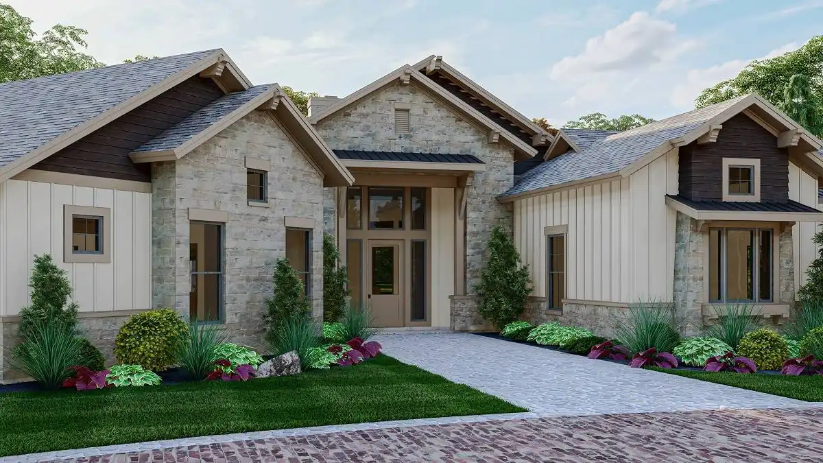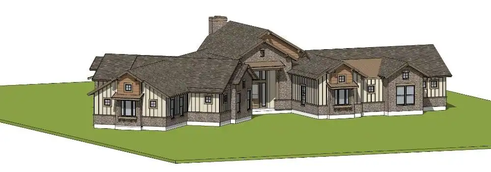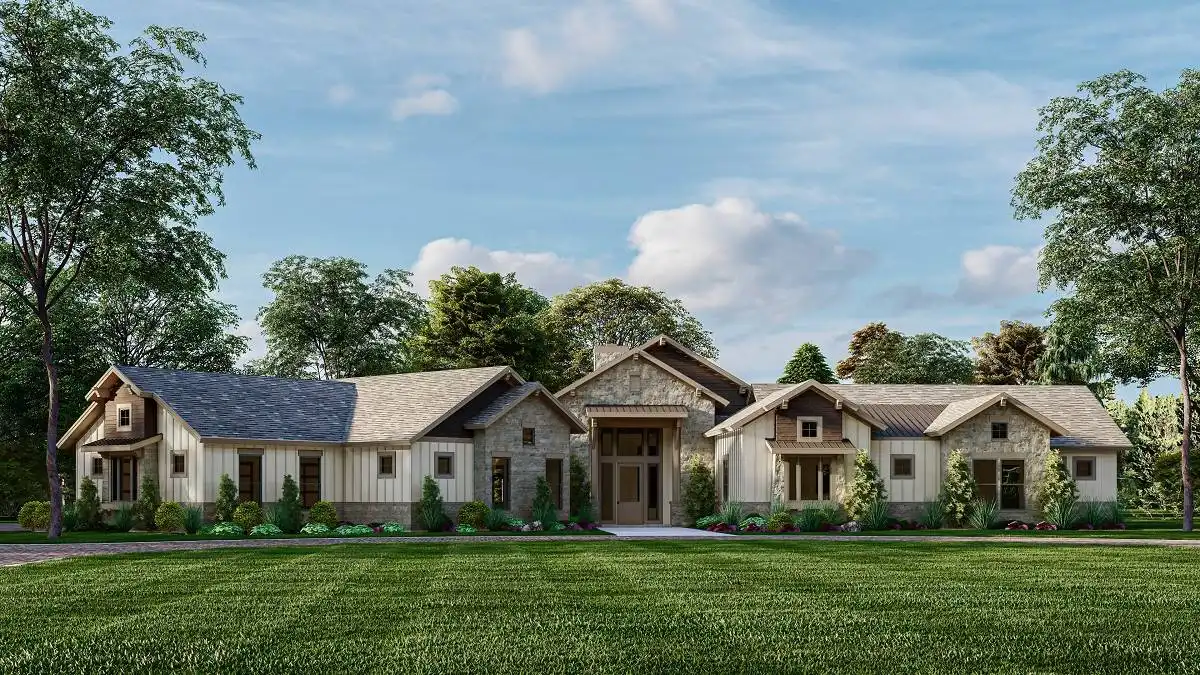 Welcome to this 3,165 sf, 4 bedroom, 4 1/2 bath contemporary farmhouse. This beautiful home is warm and inviting and beckons you to step inside. The curb appeal is undeniable with the siding and stacked stone. All on one level, this beautiful home is both luxurious and comfortable with ample space for the entire family. As you walk through the front door into the foyer, you are immediately greeted with an expansive view of the dining room and kitchen to your left and the beautiful great room with fireplace feature wall, large windows leading to the outdoor living porch. Dual master suites makes this home an impressive and comfortable space for a multi-generational family to live under one roof. The main master suite on the right side of the home includes beautiful 11' tray ceilings, large his/hers walk-in closet with dressing area, and a sumptuous ensuite bath with dual vanities, private water closet, soaking tub and walk in shower. Master suite #2 is located on the left side of the home and boasts a lovely cathedral ceiling, large walk in closet, and dual vanities in the ensuite bath. Also located on this side of the house is a comfortable and cozy bedroom 3 with private bath and the study with 11' tray ceiling. Laundry room, storage, mechanical room and the pantry are all located in this area. The outdoor living off the great room and dining room areas is a wonderful place for entertaining. The Outdoor kitchen area is perfect for treating your guests to the gourmet meals being made in this beautiful space. This home is a wonderful place for relaxation, entertainment and comfort.