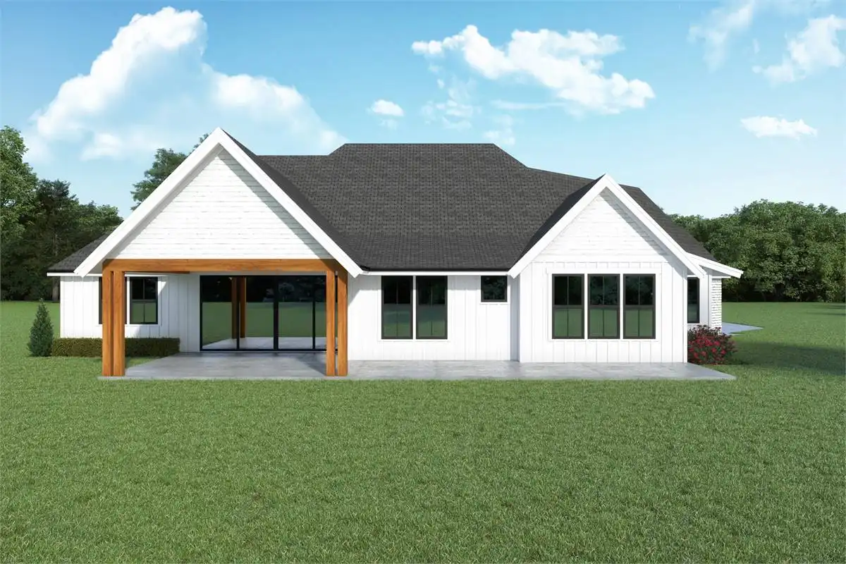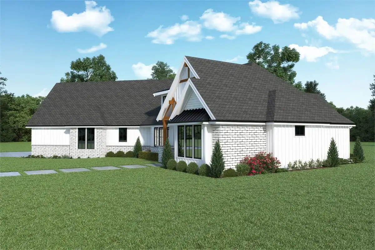 House Plan 9796 is a fantastic choice that meets the needs of today's families. It features 2,889 square feet with three bedrooms and two-and-a-half baths on one story. The center of the floor plan includes the main spaces; the vaulted great room is open to the island kitchen and has clear sight lines to the dining room and casual nook, too. The split-bedroom layout places the master suite on one side of the house while the other two bedrooms are on the other. Everybody has a walk-in closet and direct access to a bathroom! This home has a bonus over the garage if you need more interior space, and the patio in back makes it easy to expand outside into the fresh air. There's a lot for a family to appreciate in this sleek country design, so be sure to take a closer look!