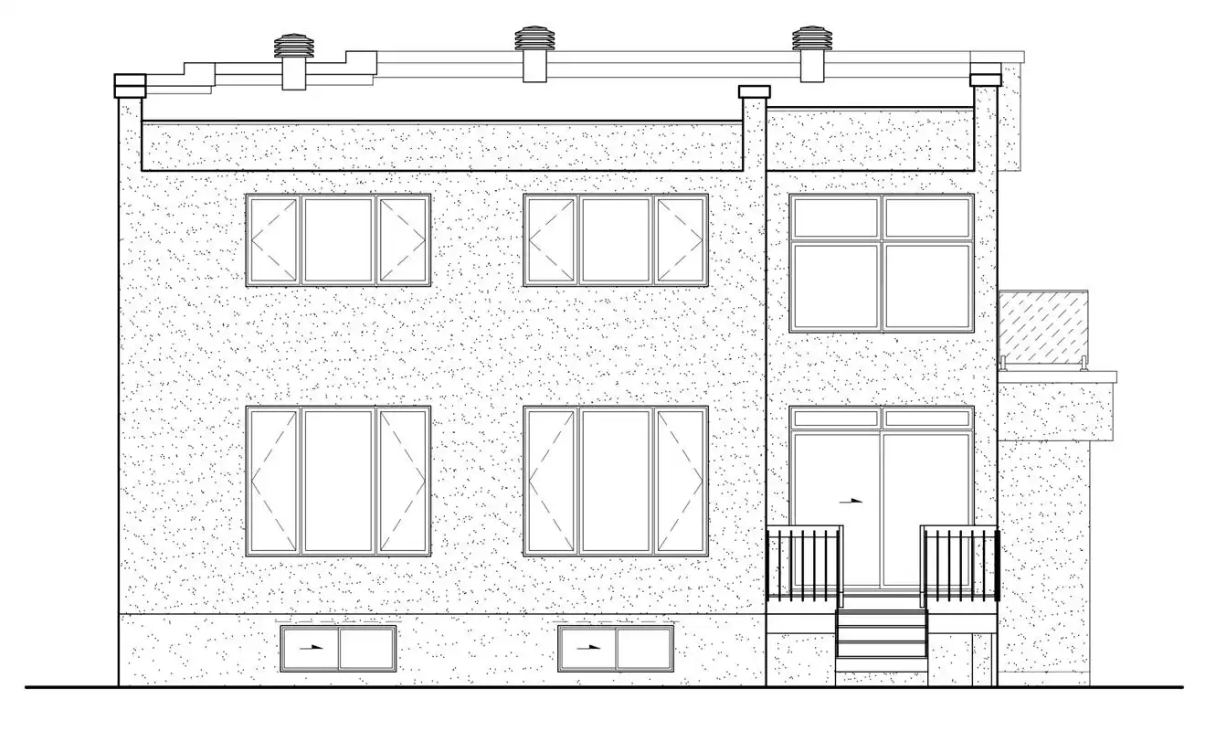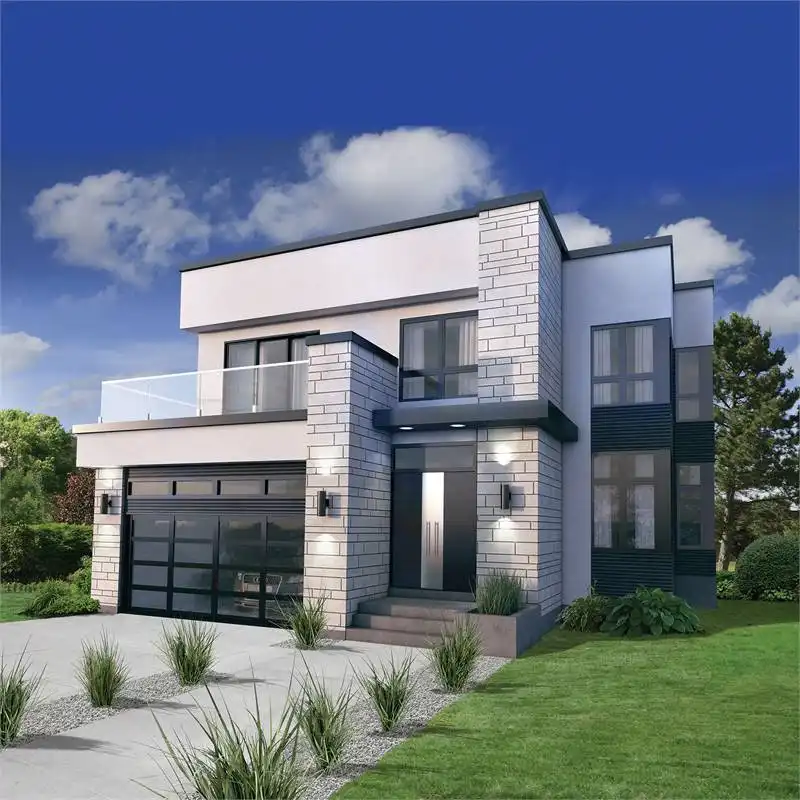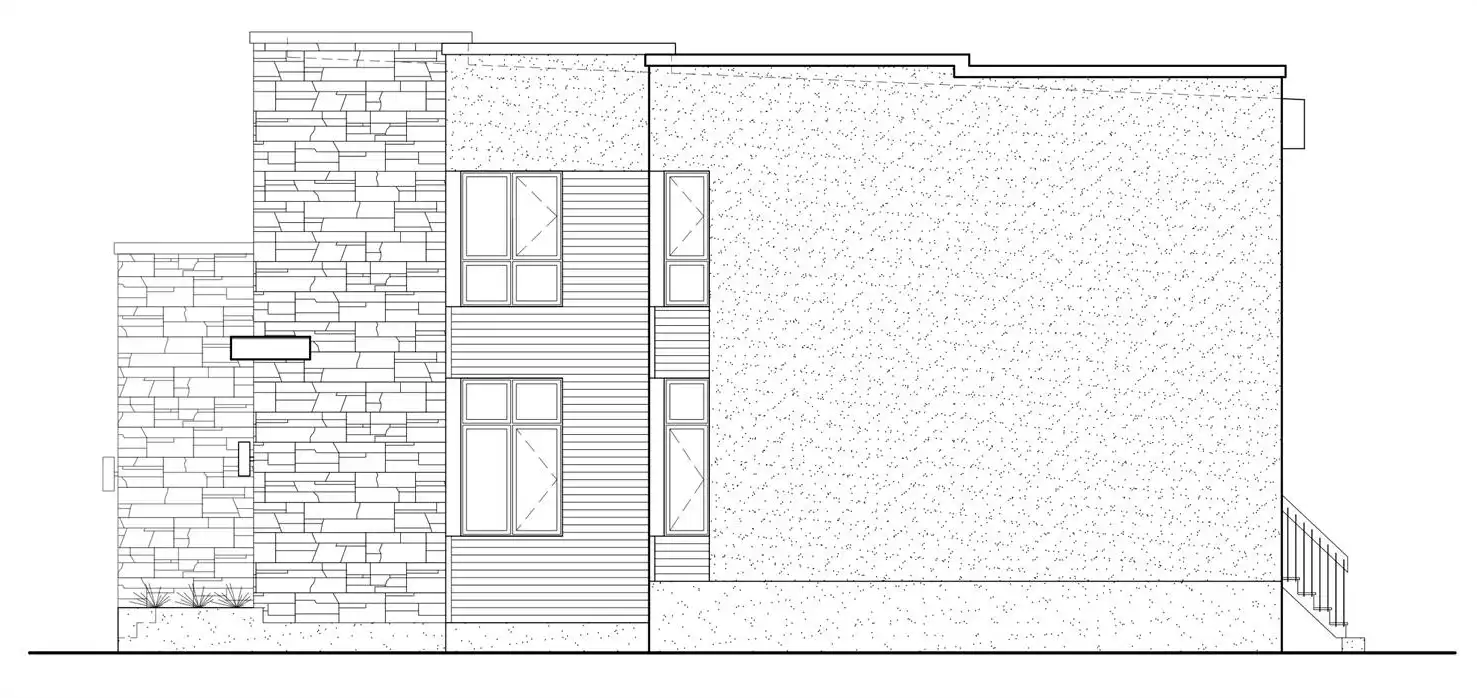 Your new neighbors will marvel when they view this modern three-bedroom design. Double doors introduce the foyer, where a coat closet accepts your guests' jackets. Three steps up, a quiet office allows you to work from home. The living and dining rooms both open to the outdoors via sliding glass doors. The island kitchen incorporates snack space for four. Upstairs, the lovely master suite opens to a rooftop deck. A loft overlooks the living room below.