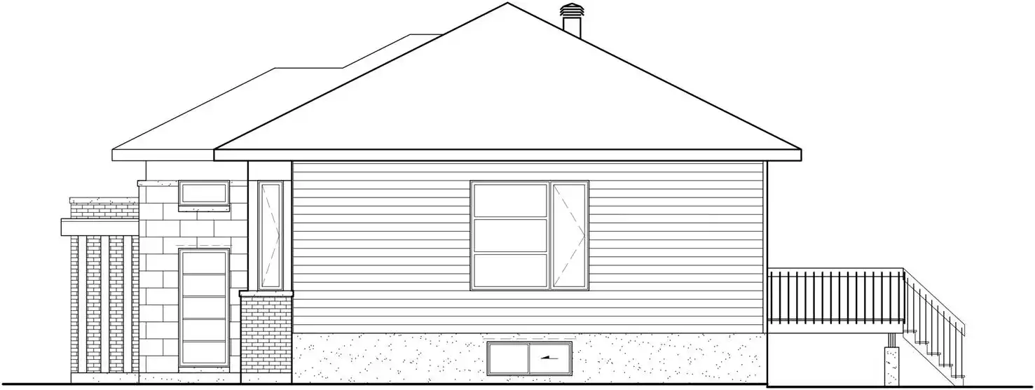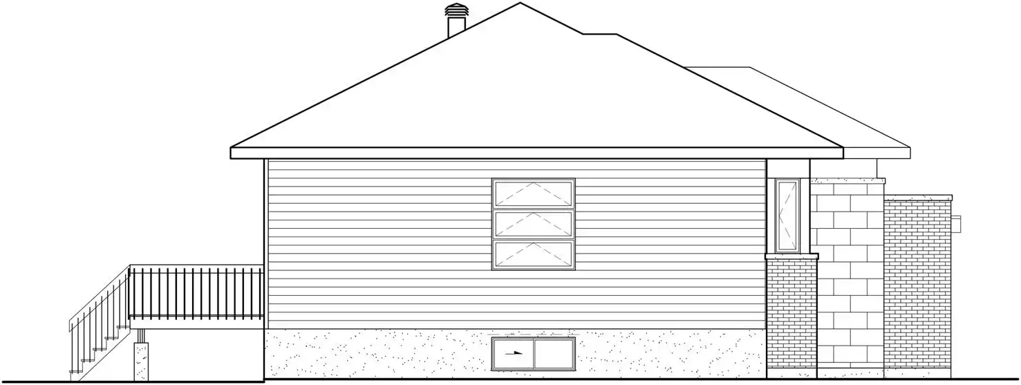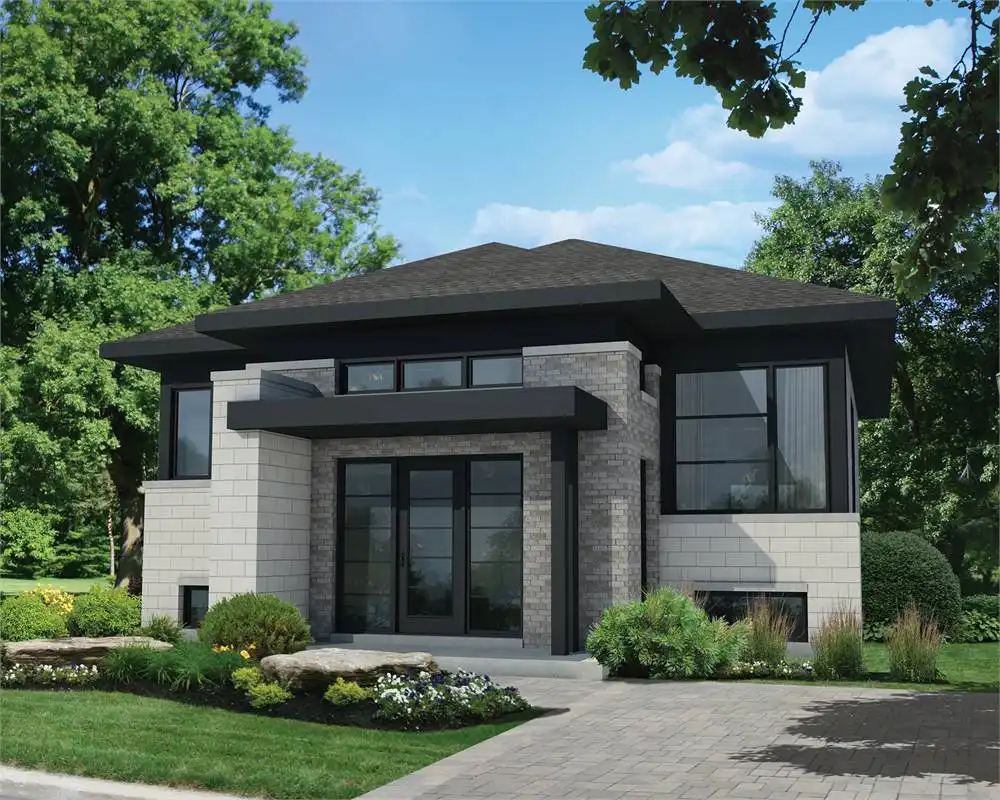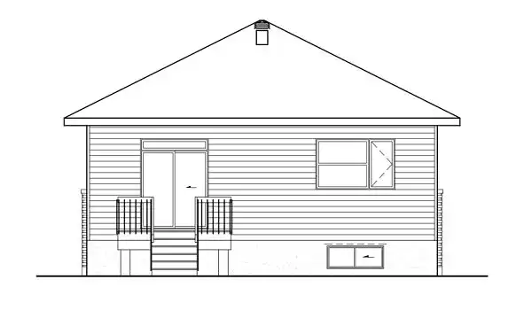 This contemporary two-bedroom design flaunts an eye-catching façade. The welcoming foyer is unusual and bright. Up a few steps, the main floor is nicely designed. The island kitchen flows into the dining area, for easy serving of meals and snacks. Imagine good conversation with friends in the cozy living room. Two bedrooms share a full bath and a convenient laundry closet. Don't forget the future expansion possibilities on the basement level.