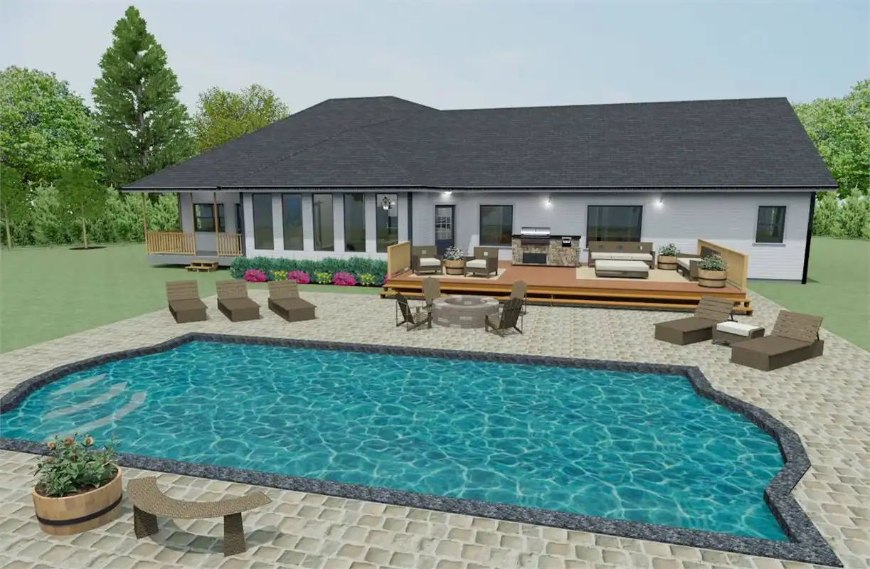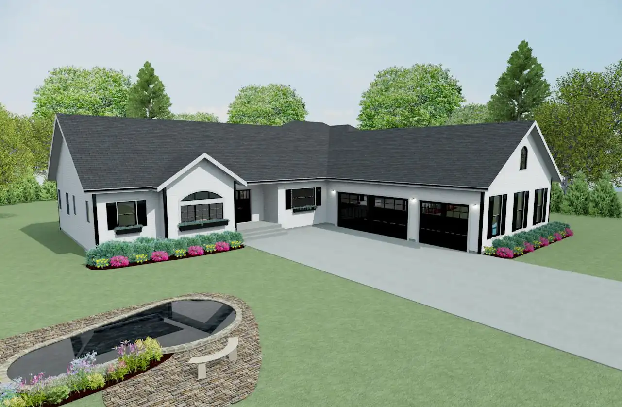 Welcome to our new 4 bedroom, Ranch style plan. This beautiful home consists of 2,661 sf of practical living.  The exterior grabs your attention with the large windows and 3 car garage.  The interior of the home is light and bright with a large Living Room/Kitchen/Dining area that leads out to the rear deck which is perfect for entertaining. The gourmet, chef's kitchen is a dream to help create sumptuous meals for friends and family.  The master bedroom suite is luxurious and serene and provides a wonderful space to unwind at the end of the day.  A lovely master bathroom comes complete with a wet room.  The secondary bedrooms are comfortable and cozy and allows for privacy for every member of the home. This beautiful home is designed to impress even the most discerning homeowner.