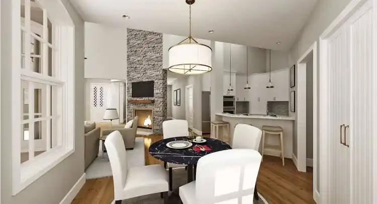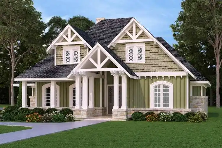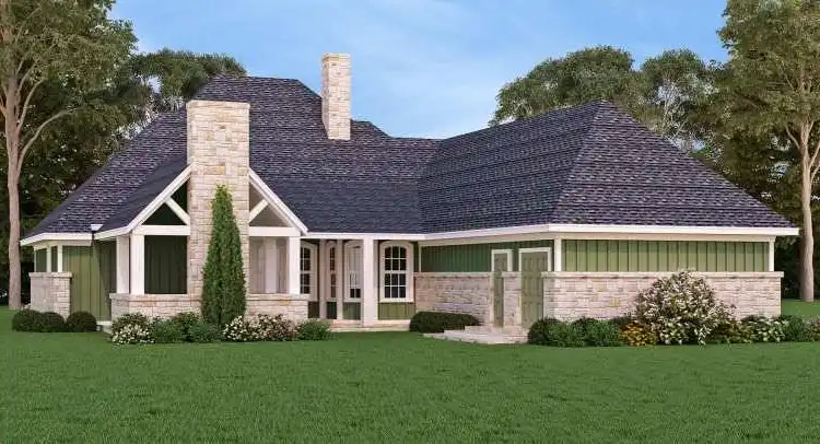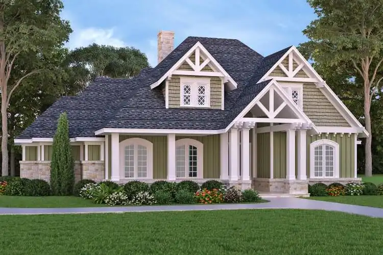 This Craftsman style home plan with columned front porch has exposed beams with stacked stone and siding and is attractive and inviting. The home includes a beautiful open living space as well as terrific entertainment space outside. The L-shaped kitchen is large and roomy and will provide a nice space for your family. An appliance "garage" is located in the corner of the kitchen giving you a place to store the mixer, bread machine, pressure cooker, and others. This beautiful home has everything you need.