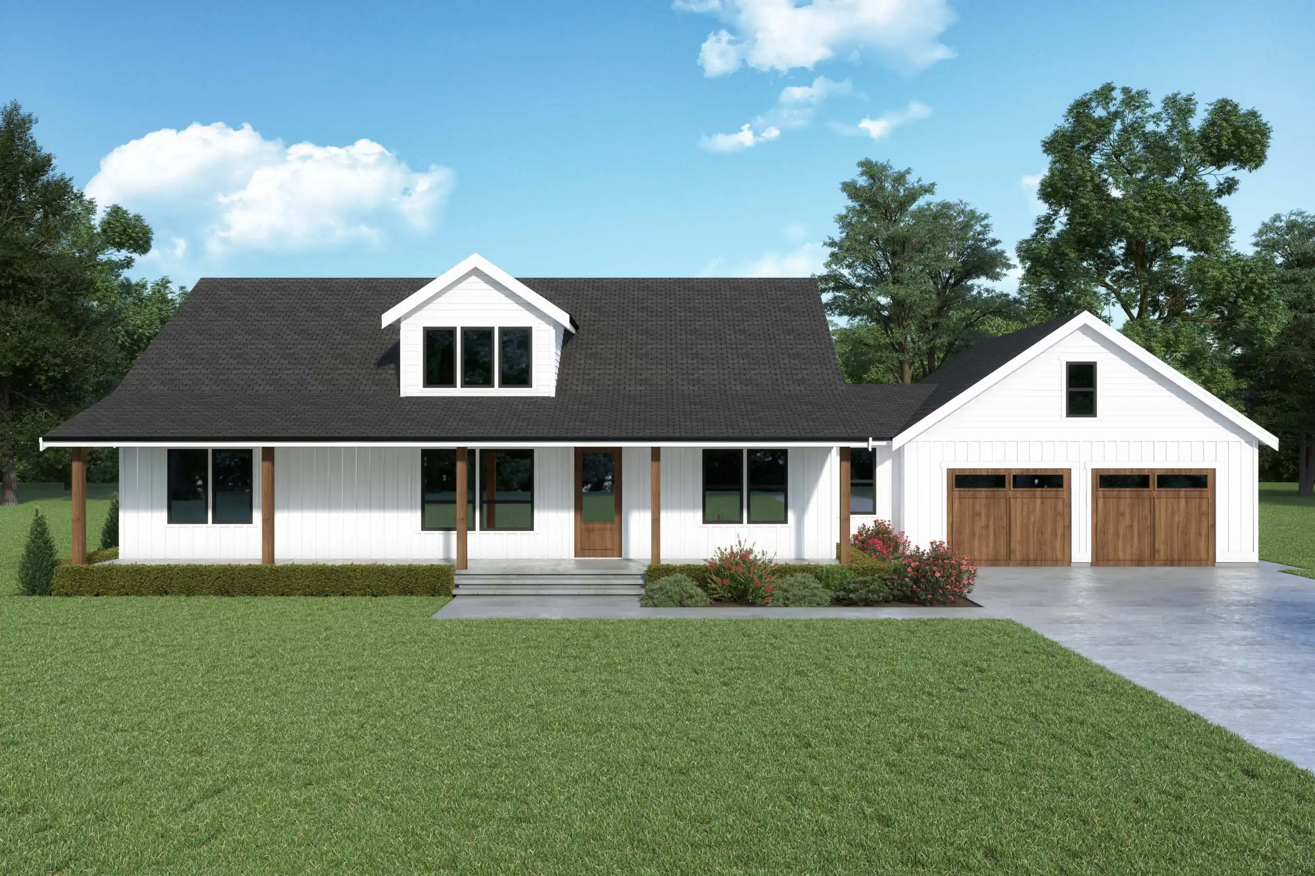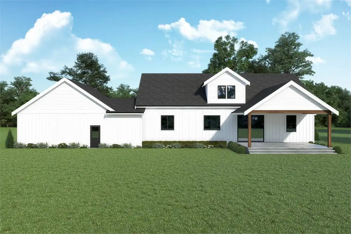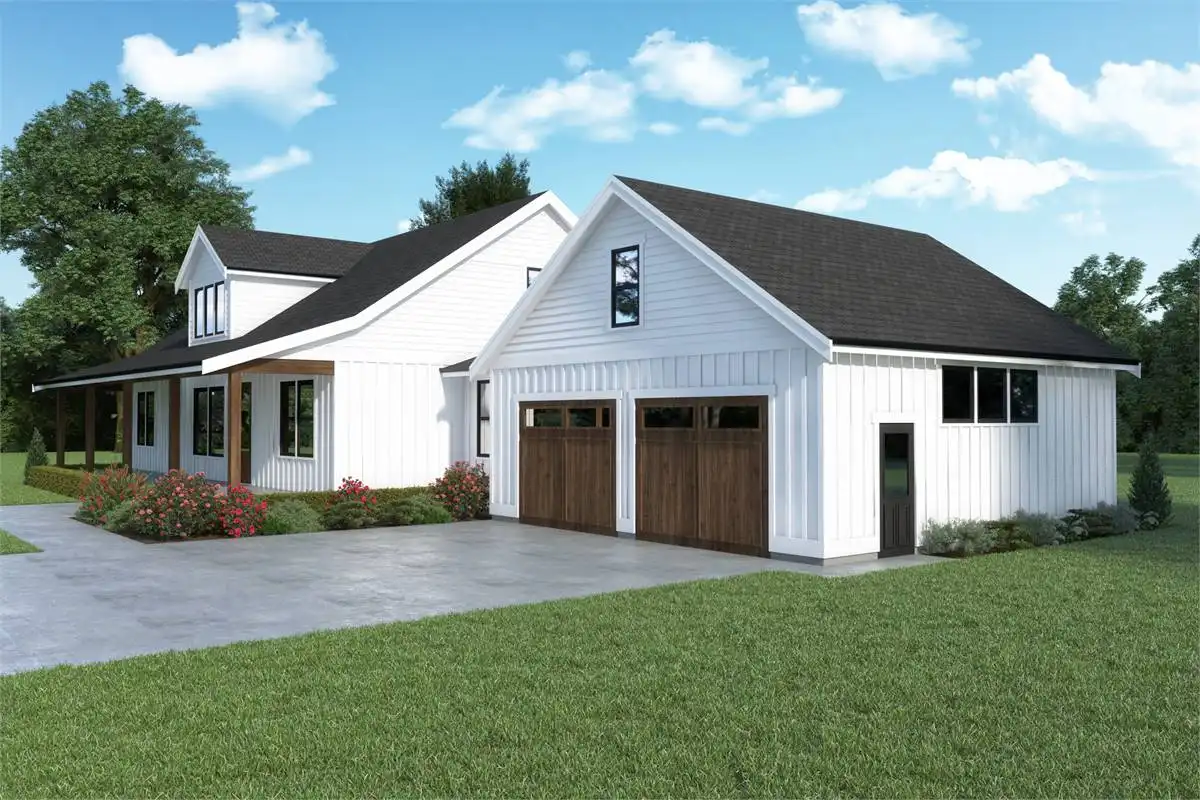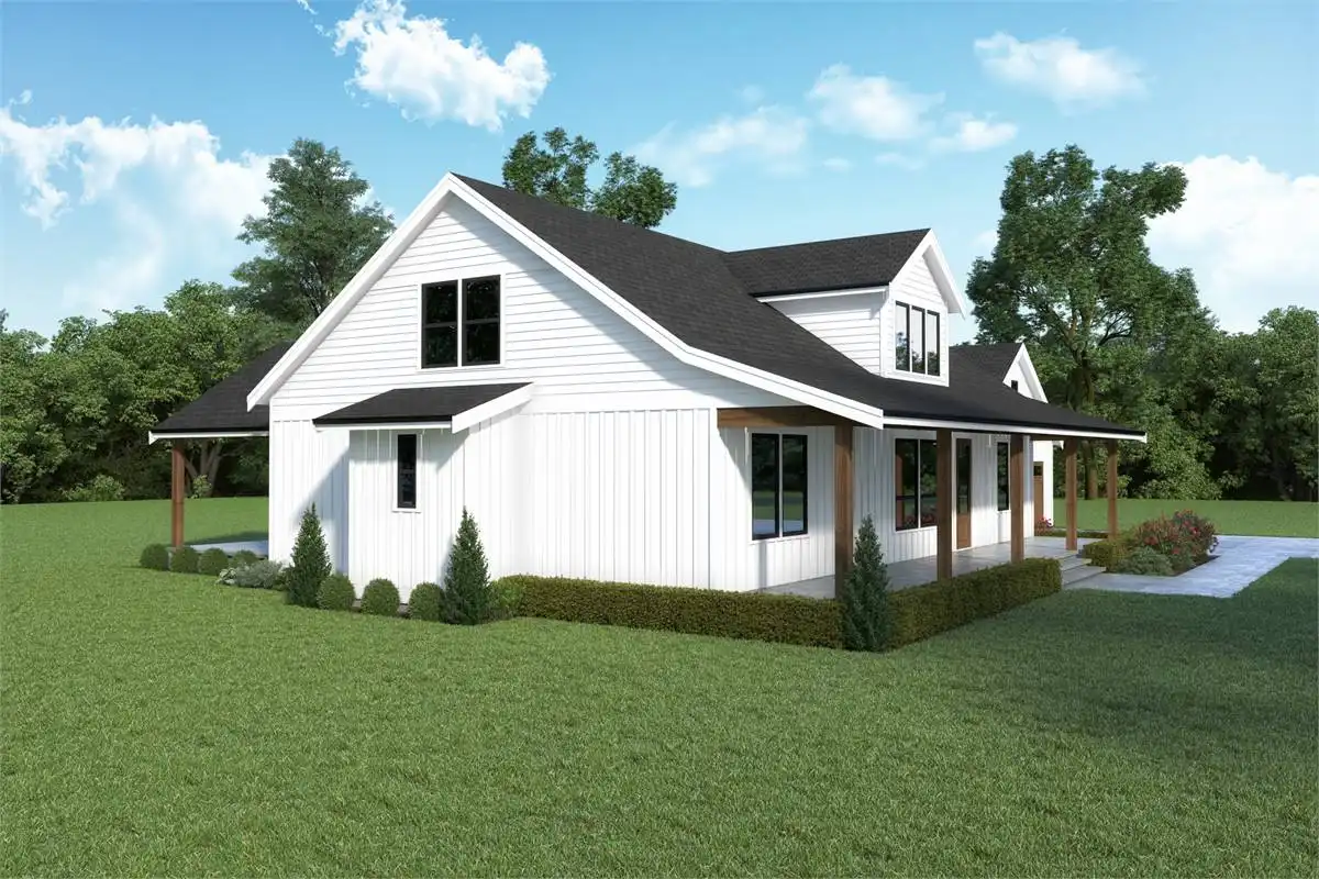 If you are looking for an affordable modern farmhouse plan, this 2,890 square foot 2 story design couldn’t get any more picturesque with its expansive 52’ wide, 7’ deep covered front porch. All it’s missing are a couple of rocking chairs and some sweet iced tea.