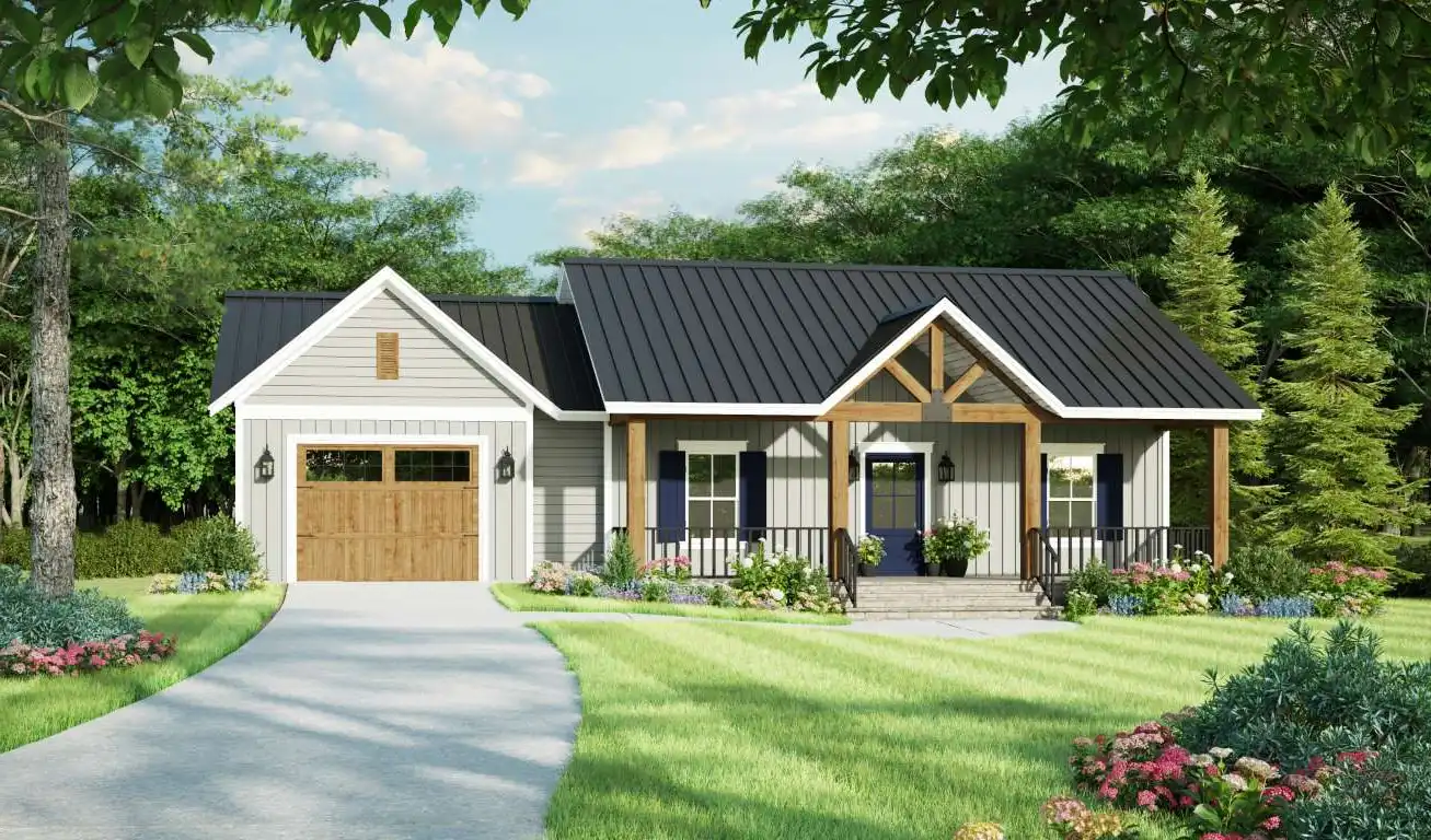 If you are a young adult or retiree and are looking to find just the right sized home to call your own, this charming 1 gabled 945 sq. ft. 1 bed, 1.5 baths might be the one you’ve been searching for. It’s a perfect blend of the popular modern farmhouse with just the right amount of craftsman charm with the wood beams and vaults. The front and back are both flanked with full porches (with the back having double deckers with the walkout option). They are perfect for summer nights, a couple of rocking chairs or a nice dinner with friends out back with some twinkle lights and a bottle of wine. Stepping into the front of the home, the vaulted ceiling of the porch is carried into the large vaulted family room giving it an even bigger feel for the open-floor plan. The large kitchen is complete with a space for a full sized W/D, a walk-in pantry, and even a conveniently located half bath for guests off the back porch. The master bath claims the entire left side of the home complete with a large walk-in closet, a large walk-in shower with a built-in seat, a vanity space for makeup, and a window to bring light in from the backyard. The right-hand side of the home has a 1 car attached garage and not just 1 storage / closet area but 2 as well as a convenient door off to the side for any days of working in the yard.