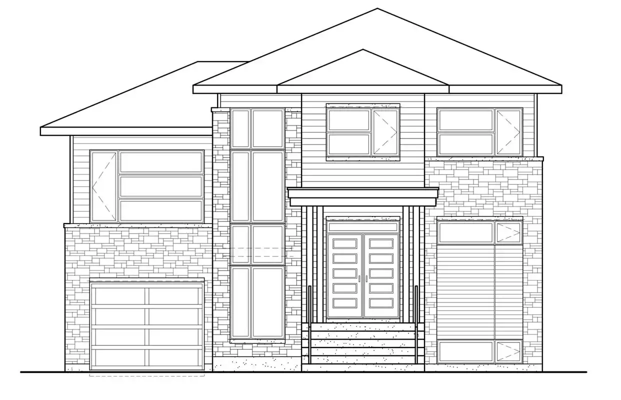 What a perfect contemporary 2 story home for a single parent family or a couple wanting to build their first house together. The elevation alone is stunning with its huge windows and mixed materials of stone and siding.