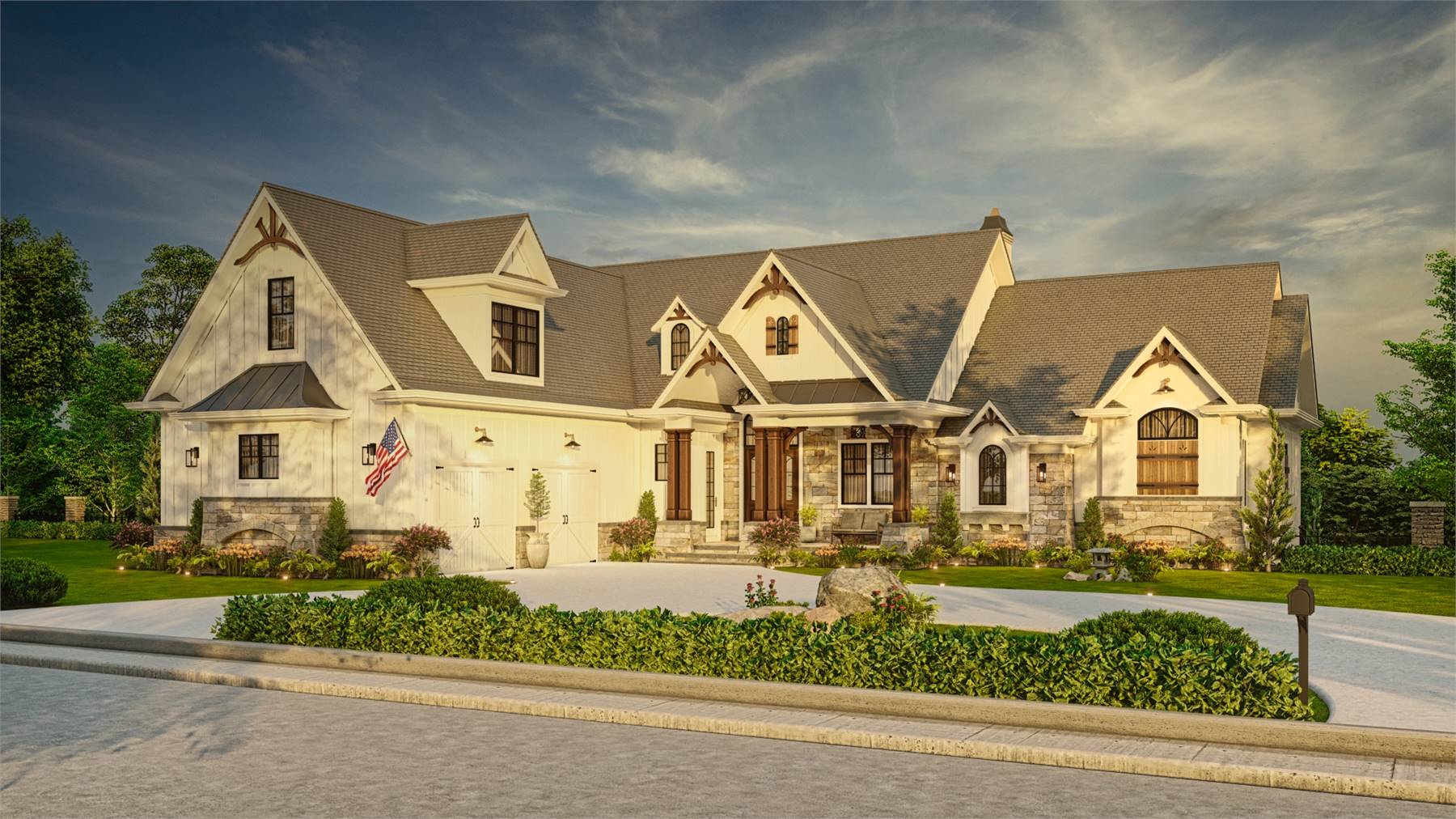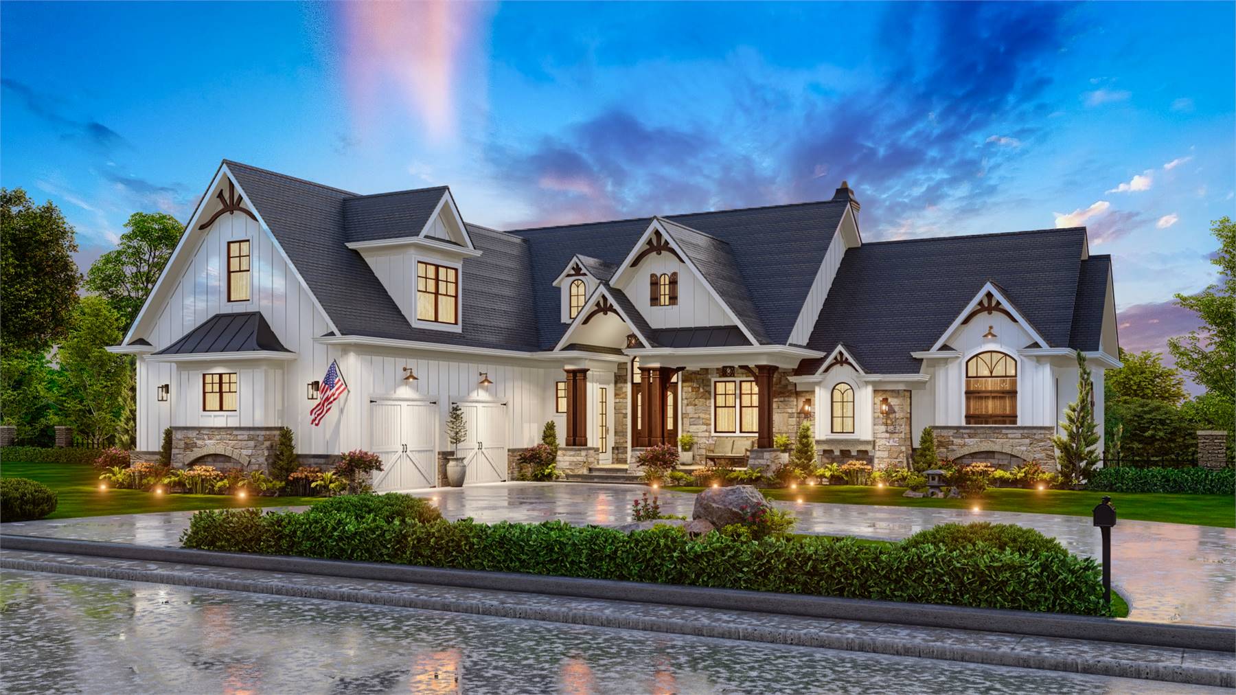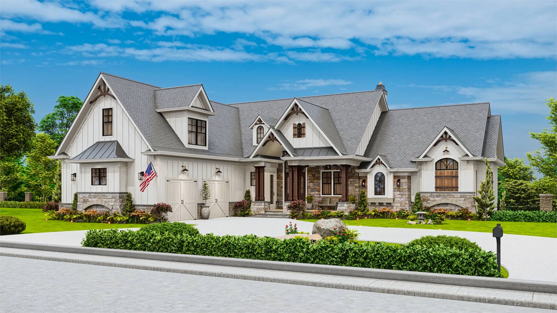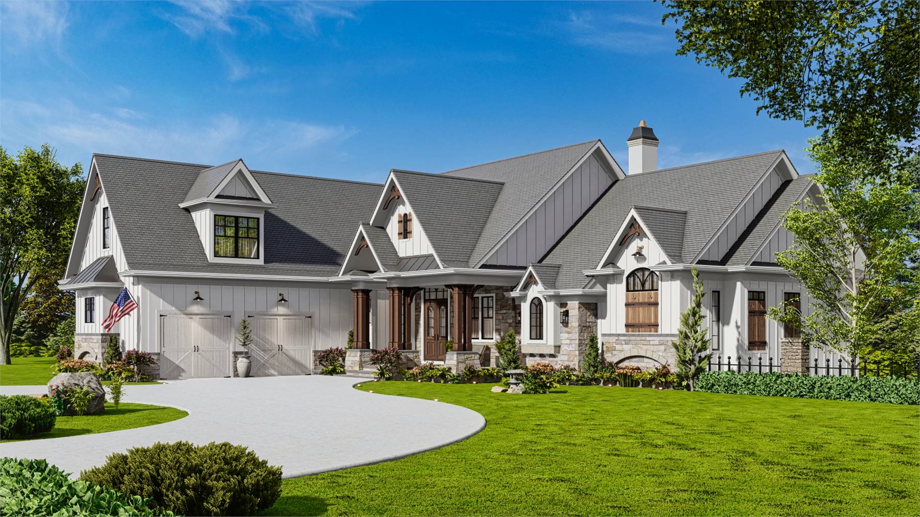 House Plan 9936 provides 4,806 square feet of spacious and welcoming living space, beginning with a covered porch that opens into a foyer and an open layout that blends the lodge room, kitchen, keeping room, and breakfast area for both everyday living and hosting. The primary bedroom includes two walk-in closets, a well-appointed bath, and access to the rear covered porch. A second bedroom with private bath, study, butler’s pantry, mudroom, and laundry round out the main level with function and comfort. The fully finished basement adds significant versatility with dedicated spaces for entertainment and hobbies, including a social room, theater, gym, workshop, storage rooms, a kitchen, pool bath, and an extra bedroom, offering an ideal setup for extended family or guests.