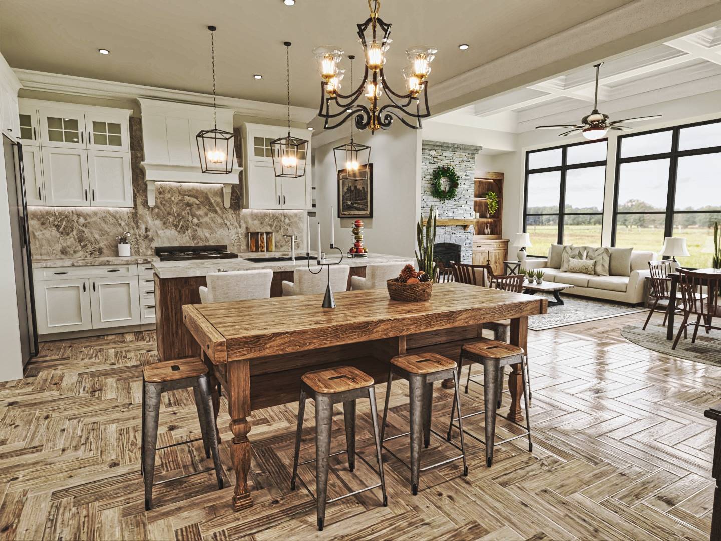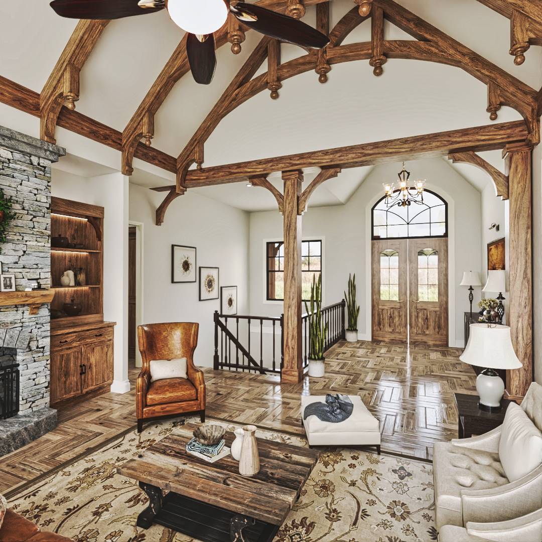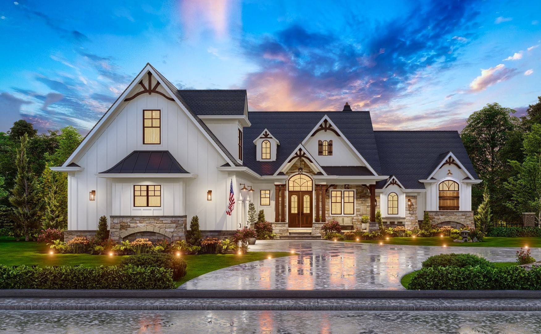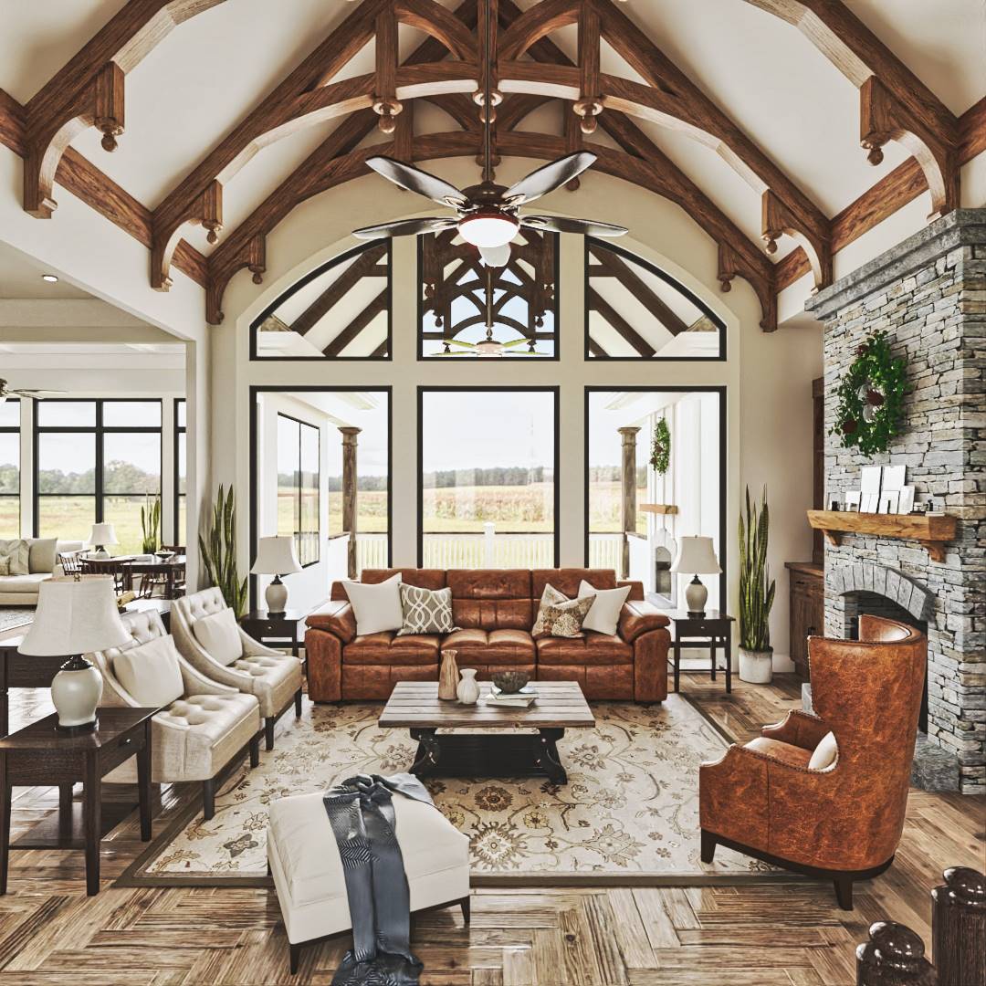 House Plan 9936 provides 4,806 square feet of spacious and welcoming living space, beginning with a covered porch that opens into a foyer and an open layout that blends the lodge room, kitchen, keeping room, and breakfast area for both everyday living and hosting. The primary bedroom includes two walk-in closets, a well-appointed bath, and access to the rear covered porch. A second bedroom with private bath, study, butler’s pantry, mudroom, and laundry round out the main level with function and comfort. The fully finished basement adds significant versatility with dedicated spaces for entertainment and hobbies, including a social room, theater, gym, workshop, storage rooms, a kitchen, pool bath, and an extra bedroom, offering an ideal setup for extended family or guests.