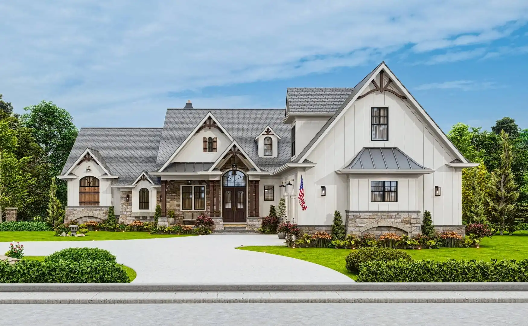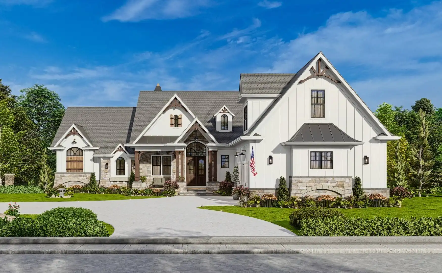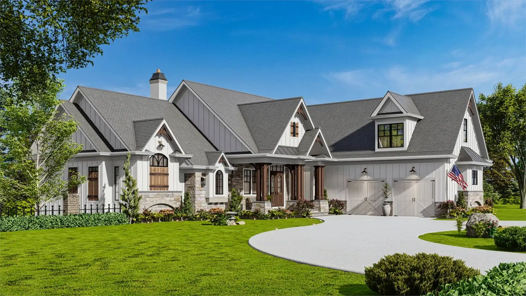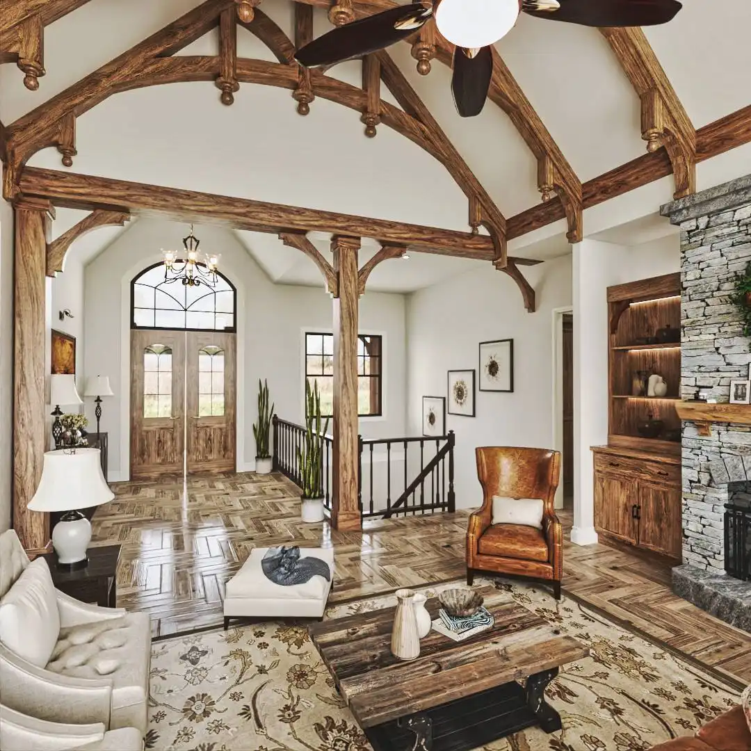 House Plan 9936 provides 4,806 square feet of spacious and welcoming living space, beginning with a covered porch that opens into a foyer and an open layout that blends the lodge room, kitchen, keeping room, and breakfast area for both everyday living and hosting. The primary bedroom includes two walk-in closets, a well-appointed bath, and access to the rear covered porch. A second bedroom with private bath, study, butler’s pantry, mudroom, and laundry round out the main level with function and comfort. The fully finished basement adds significant versatility with dedicated spaces for entertainment and hobbies, including a social room, theater, gym, workshop, storage rooms, a kitchen, pool bath, and an extra bedroom, offering an ideal setup for extended family or guests.