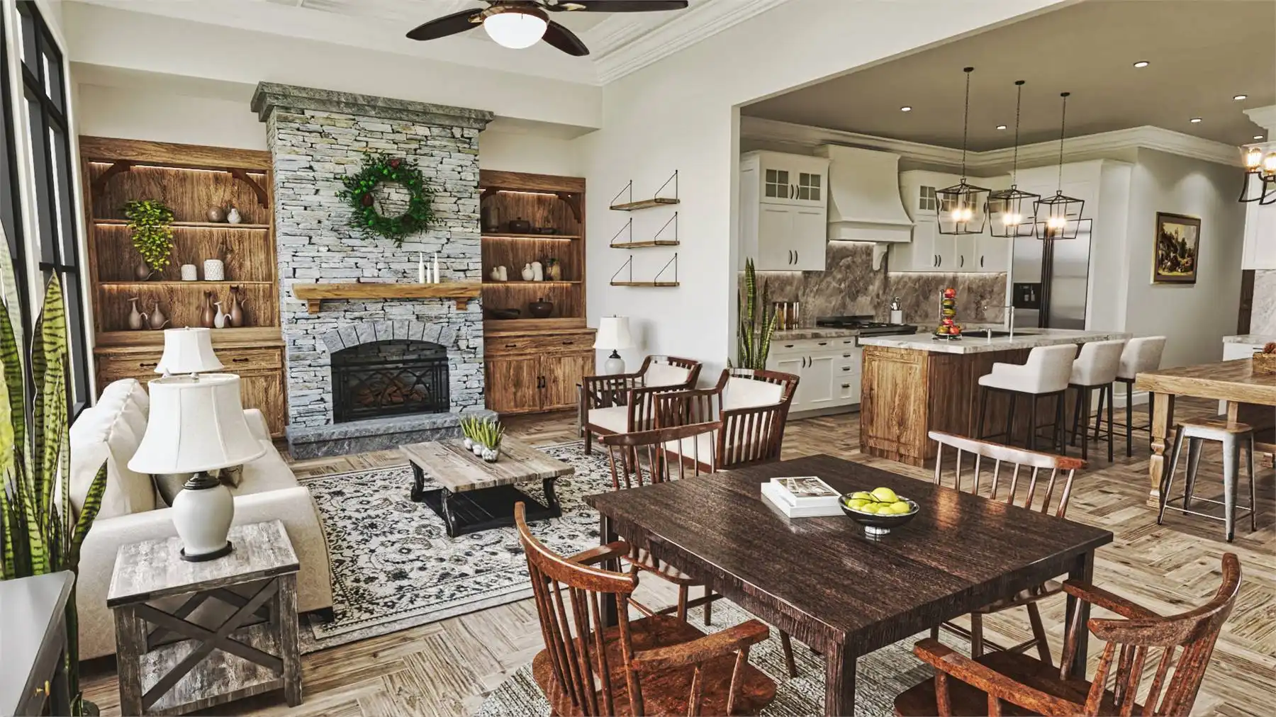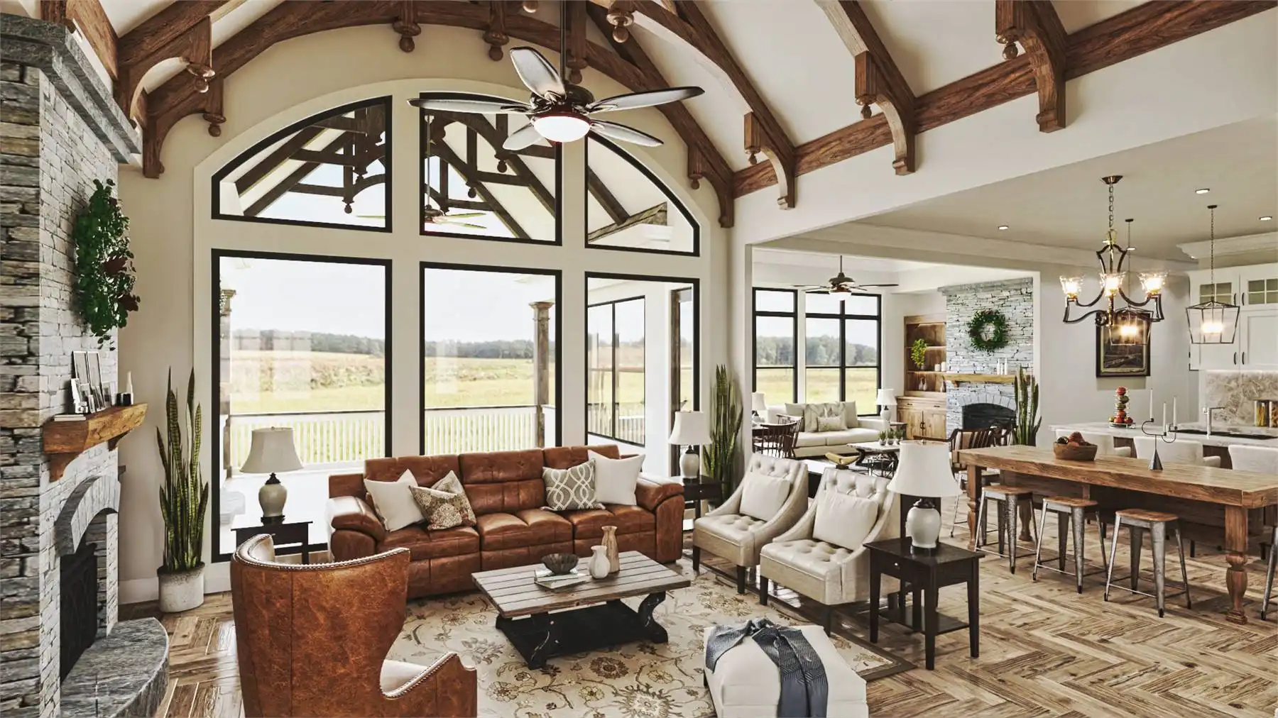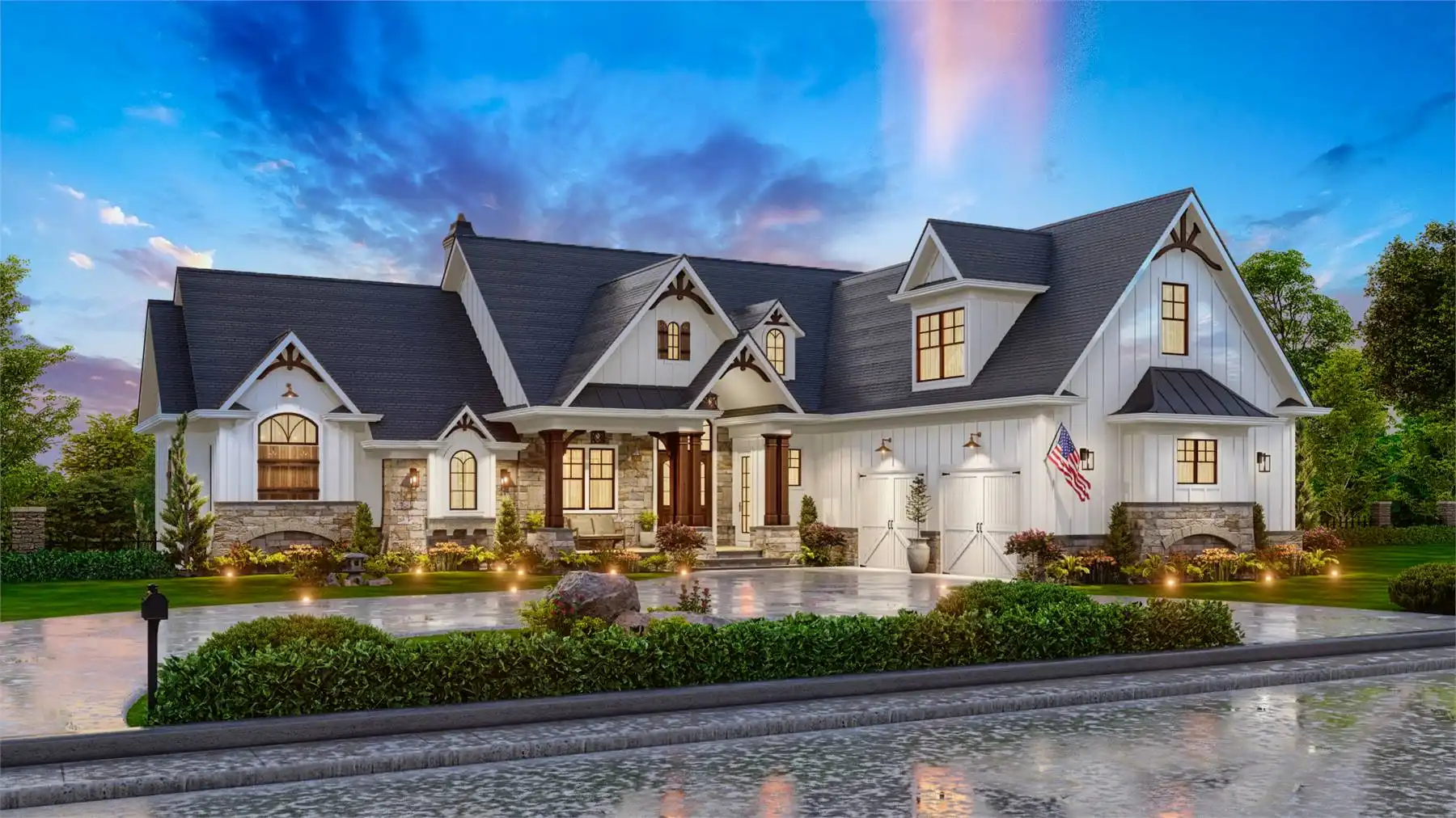 House Plan 9936 provides 4,806 square feet of spacious and welcoming living space, beginning with a covered porch that opens into a foyer and an open layout that blends the lodge room, kitchen, keeping room, and breakfast area for both everyday living and hosting. The primary bedroom includes two walk-in closets, a well-appointed bath, and access to the rear covered porch. A second bedroom with private bath, study, butler’s pantry, mudroom, and laundry round out the main level with function and comfort. The fully finished basement adds significant versatility with dedicated spaces for entertainment and hobbies, including a social room, theater, gym, workshop, storage rooms, a kitchen, pool bath, and an extra bedroom, offering an ideal setup for extended family or guests.