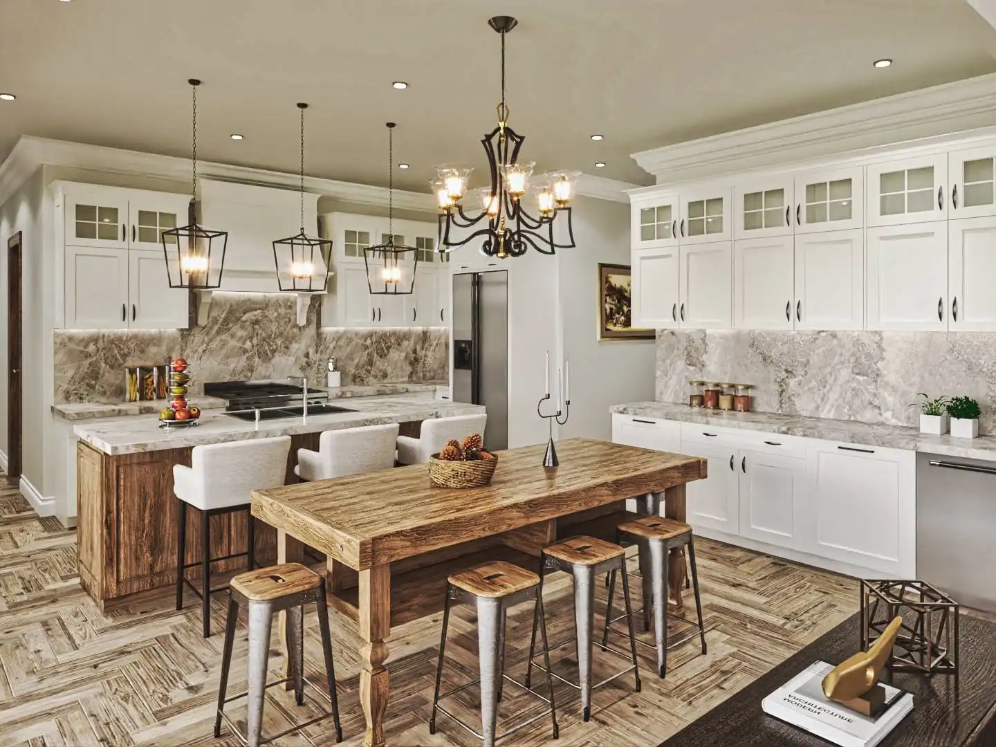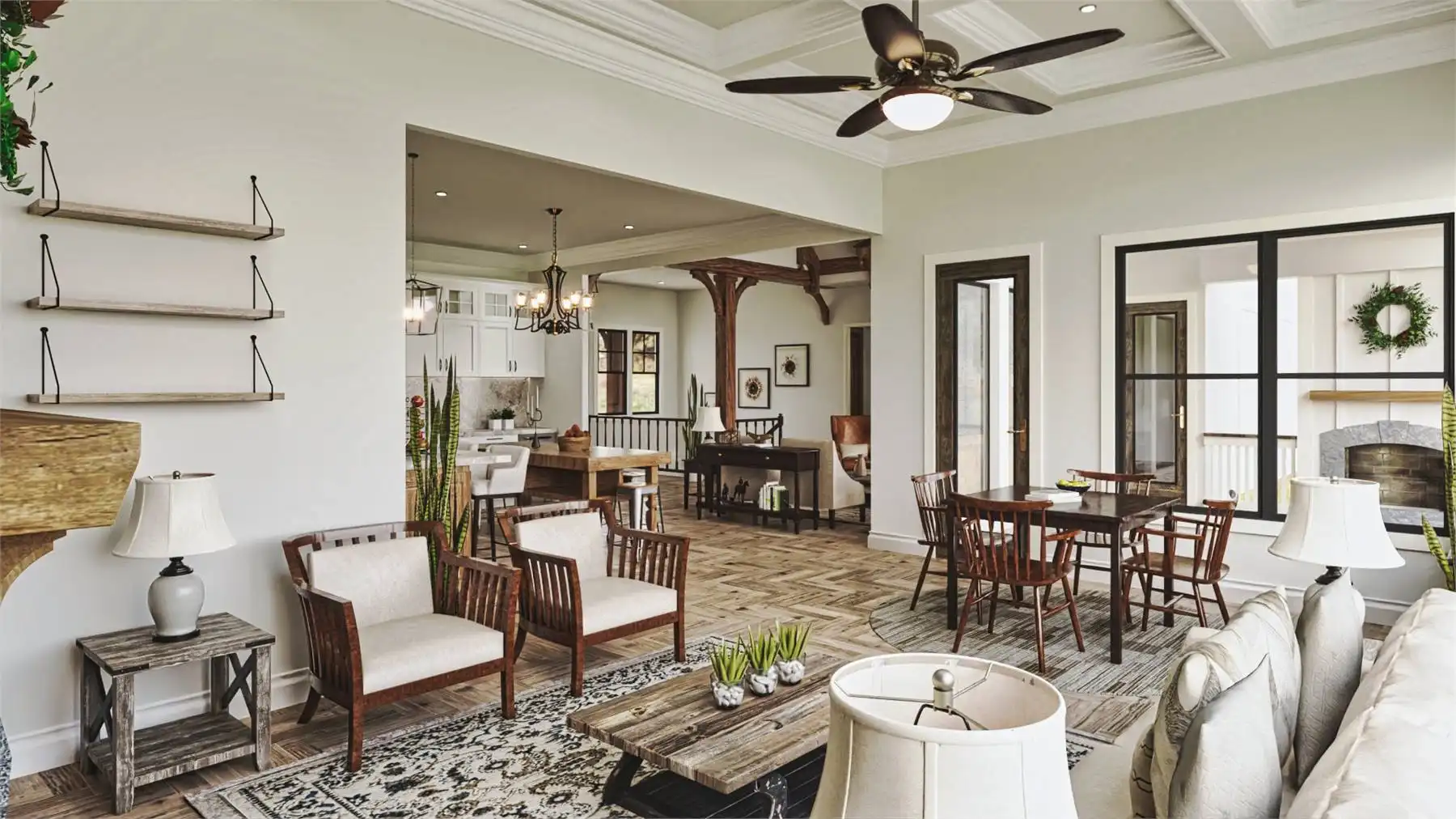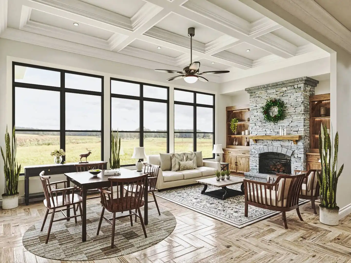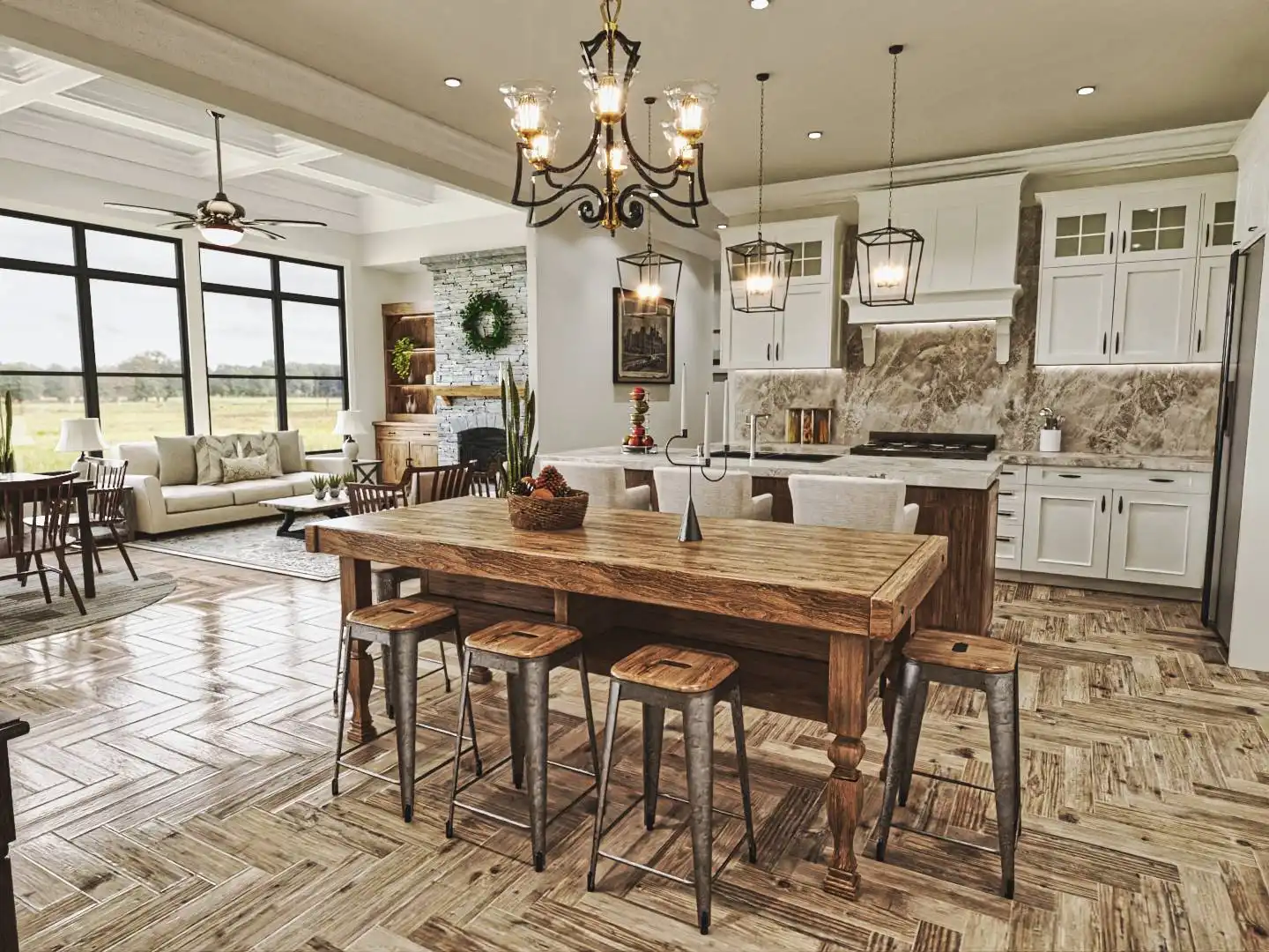 House Plan 9936 provides 4,806 square feet of spacious and welcoming living space, beginning with a covered porch that opens into a foyer and an open layout that blends the lodge room, kitchen, keeping room, and breakfast area for both everyday living and hosting. The primary bedroom includes two walk-in closets, a well-appointed bath, and access to the rear covered porch. A second bedroom with private bath, study, butler’s pantry, mudroom, and laundry round out the main level with function and comfort. The fully finished basement adds significant versatility with dedicated spaces for entertainment and hobbies, including a social room, theater, gym, workshop, storage rooms, a kitchen, pool bath, and an extra bedroom, offering an ideal setup for extended family or guests.