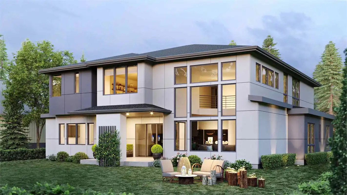 Windows say it all for this new modern contemporary two level home. This 5 bedroom, 4.5 bathroom is the definition of curb appeal. With the walls upon walls of stacked windows, front and back, there isn’t a vantage that won’t have a gorgeous view.