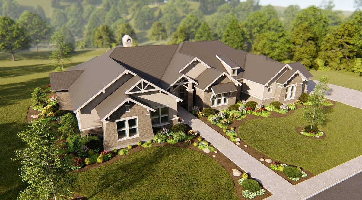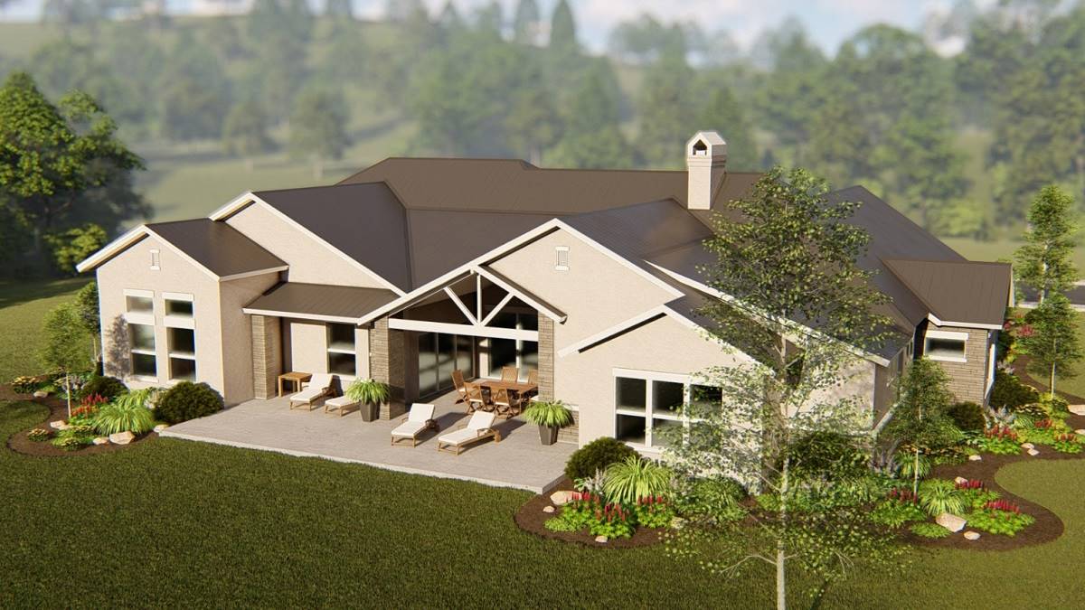 House Plan 9947 combines luxury ranch styling with a highly functional and comfortable floor plan layout. The heart of the home is the vaulted great room, which flows directly to the covered outdoor living space, creating strong indoor-outdoor connectivity. The kitchen includes a large island, walk-in pantry, and nearby casual dining space for easy daily living. The primary suite includes dual walk-in closets, a spacious bath layout, and tray ceiling detailing. A separate guest suite with its own bath and porch access enhances privacy and flexibility. The game room provides an additional entertainment zone, while the study supports work-from-home needs. Dual garages—one 2-car and one 1-car—support storage, vehicles, or workshop space.