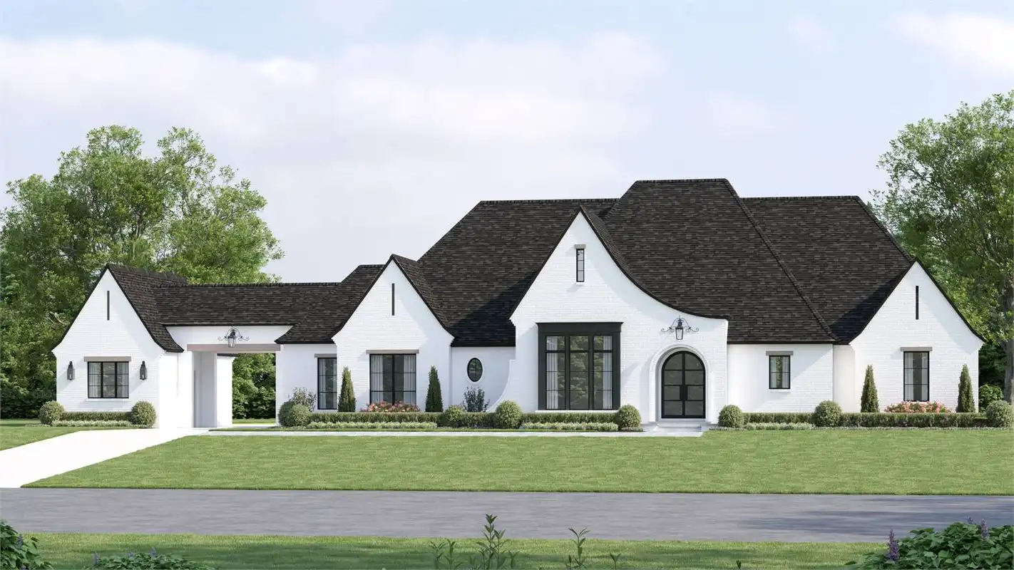 The stunning French Tudor estate will dominate any neighborhood’s street with its sprawling 120’8” width and depth of 94’5”. The 3,340 sq.ft. 1 story home has a split bedroom layout and intermixes entertaining with liveability.
